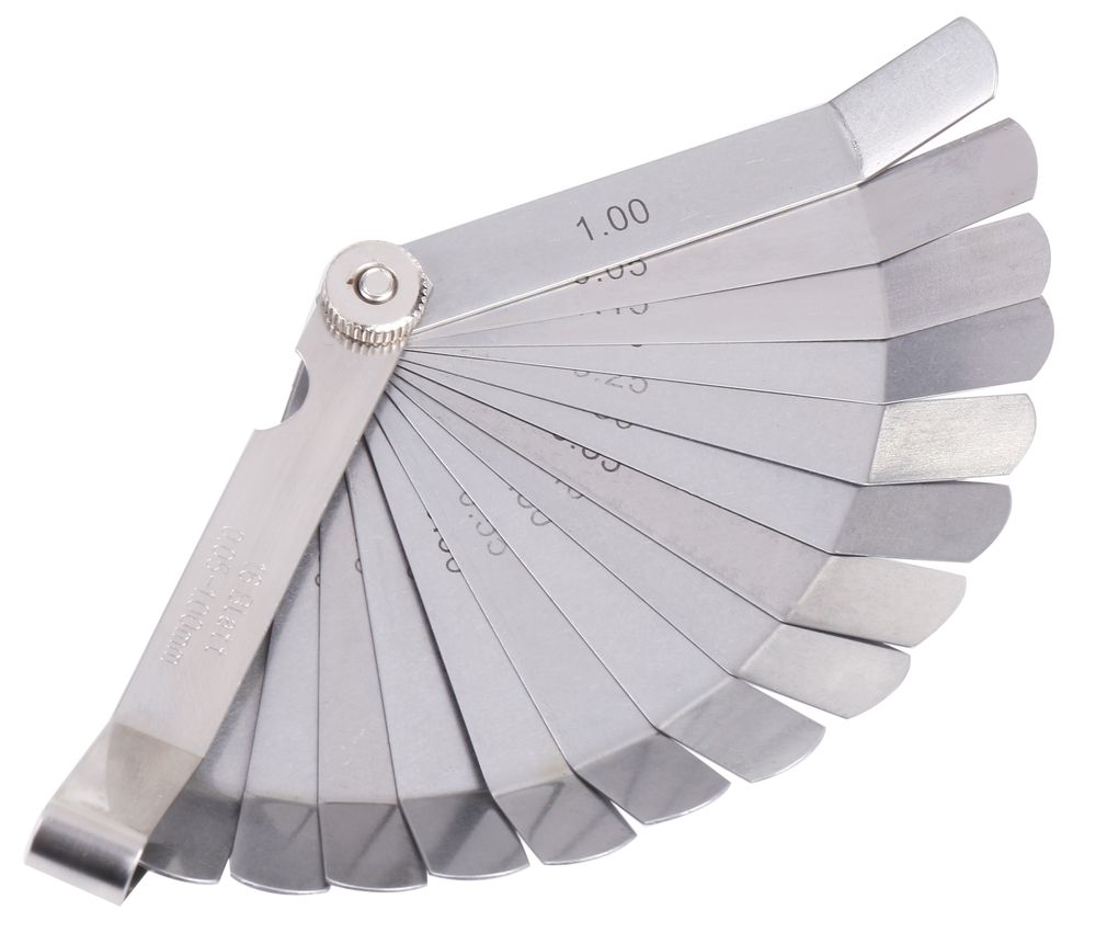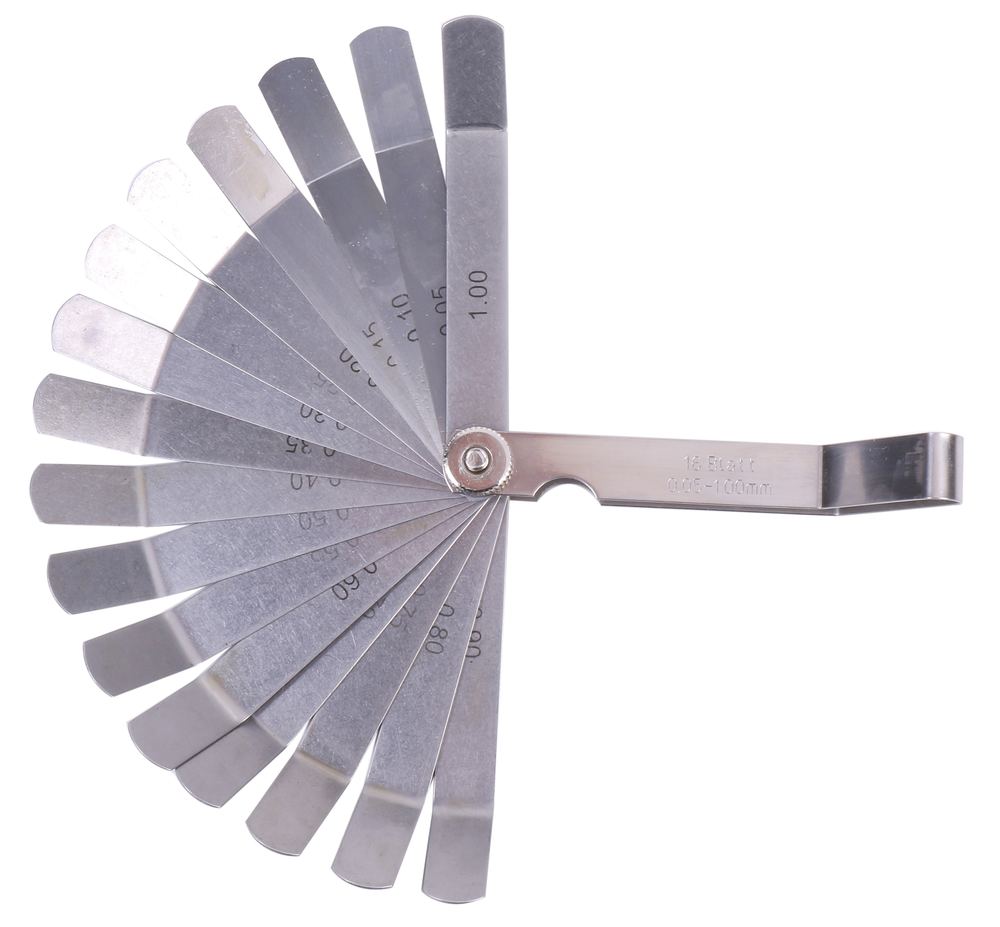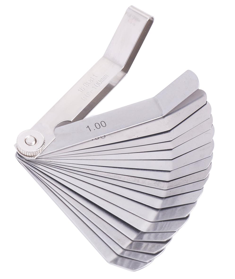 16枚のリーフ付の隙間ゲージです。