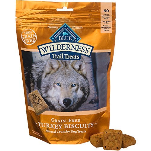 Turkey Biscuits Natural Crunchy Dog Biscuits BLUE Wilderness® Trail Treat Biscuits are so tasty that the entire wolf pack would run for miles to get just one. The perfect crunchy treat for your meat-loving dog, Wilderness Trail Treat biscuits are made with only the finest natural ingredients like duck, salmon, turkey, potatoes and flaxseed. A 100% Grain-Free Baked Treat Like all BLUE Wilderness foods, Wilderness Trail Treat Biscuits are 100% grain-free so your dog can enjoy a high-protein treat without any of the grains that contain gluten. Made with the finest natural ingredients Always starts with real turkey No chicken or poultry by-product meals Crude Protein 30.0% min Crude Fat 16.0% min Crude Fiber 3.5% max Moisture 11.0% max Omega 3 Fatty Acids* 0.8% min Omega 6 Fatty Acids* 0.9% min *Not recognized as an essential nutrient by the AAFCO Dog Food Nutrient Profiles.Feature