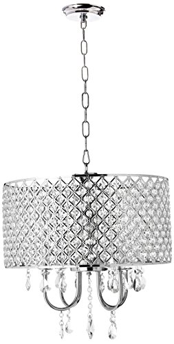 Add some class to your home decor with this 4-light deluxe crystal chandelier. This elegant light fixture will dazzle your home with beauty. Contemporary and dazzling, the Warehouse of Tiffany RL5623 Royal Crystal Chandelier features a square, open work metal frame studded with generous rows of cascading crystals to catch the light and shimmer. More crystals suspend from polished chrome arms.Feature