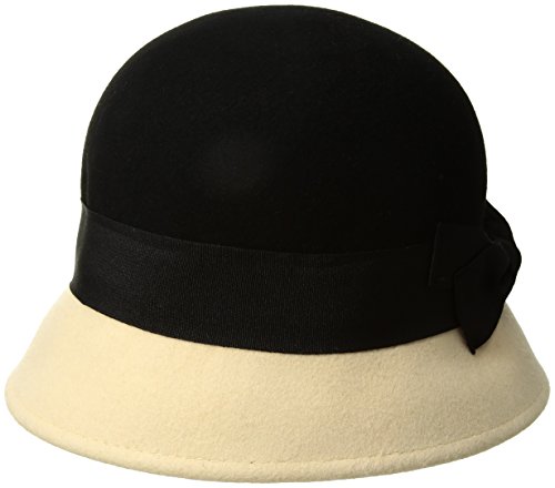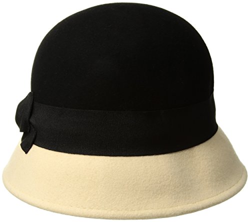 San Diego Hat Company Women's 2 inch Brim Wool Color Block Cloche Hat with Grossgrain Bow
