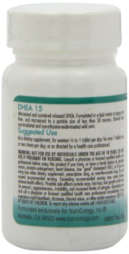 ReleaseDate : 2012-08-20 Studio : Nutricology Publisher : Nutricology Binding : Health and Beauty Product Description Micronized and sustained released DHEA. It is formulated in a lipid matrix to bypass the liver, and micronized to a particle size of less than 50 microns for optimal absorption. Soy free the source material wild yam is non irradiated and non ethylene oxide treated. Replaces product #52821. 0
