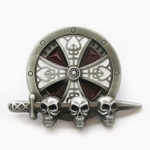 Binding : Apparel Product Description New Vintage Enamel Round Iron Cross Knot W Skull Belt Buckle Gurtelschnalle Boucle de ceinture Brand New In Stock Only Buckle No Stand SKU:BUCKLE-3D043 Material: Zinc Alloy Heavy Metal Antique Brushed Silver Color Ship to worldwide Both Safety Material and Plating by Lead Free Length Size is, 3.54 inches, Height Size is, 2.4 inches, Weight is 3.0 oz Length Size is, 90 mm, Height Size is, 61 mm, Weight is 85 g The inner diameter for back loop is, 1.58 inches (40 mm), fits belt up to 1.58 inches (40 mm) Width Button Snap On Belts All of our buckles is fitting to all of our Button Snap on Belts you could please choose your favorite belt in our store 0