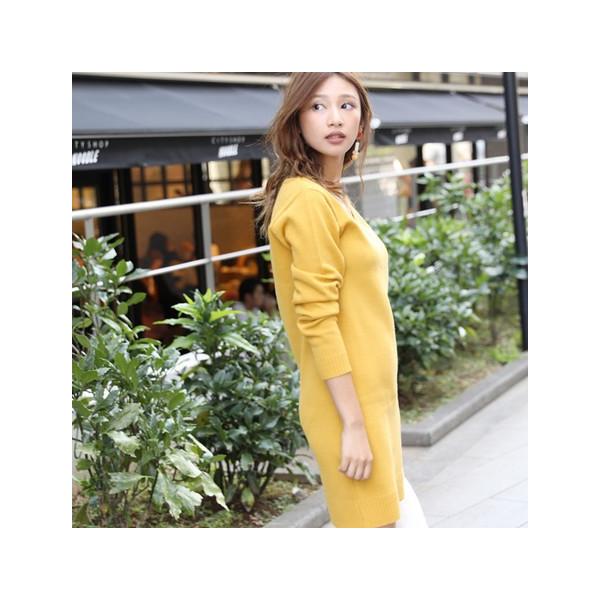 ■ベーシックなシンプルニットワンピース■ シンプルなカラーニットワンピース。程良いVネックで一枚で着られて、デイリーの着こなしにピッタリなアイテム。 シックな秋冬コーデの差し色におすすめ。下にデニムなどのボトムを合わせても今年らしい着こなし◎アクセサリーや小物で、自分らしい着こなしを楽しめます。 モデル:160cm着用カラー:マスタード(65)伸縮性:あり裏地:なし透け感:薄い色あり生地の厚さ:薄手肌ざわり:敏感肌の方はインナー着用をオススメします。【サイズ】 着丈/85cm 身巾/45.5cm 裾巾/40.5cm 袖丈/60.5cm【素材】 アクリル100% 杢グレーのみ アクリル95% ポリエステル5%