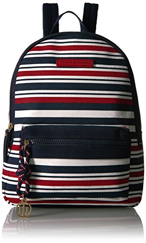 Studio : Tommy Hilfiger Publisher : Tommy Hilfiger Binding : Apparel Product Description Backpack for women featuring a nautical rope charm, front zip pocket, and gold hardware. Main compartment zipper closure with top handle. Adjustable shoulder straps with gold hardware detail. Lined nylon interior with wall zip pocket and slip pocket. This Tommy Hilfiger backpack purse is a versatile essential, the perfect small backpack for work or play. Our stylish women's backpack will keep you organized while on the go. 9-5/8" length; 12-5/8" height; 4-1/8" width; 3" drop. 0