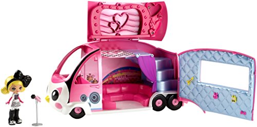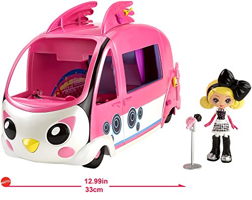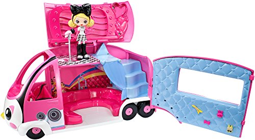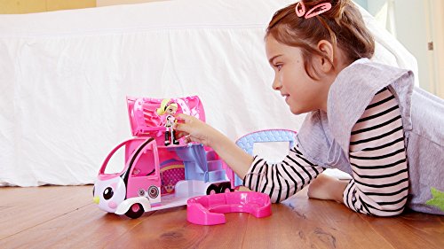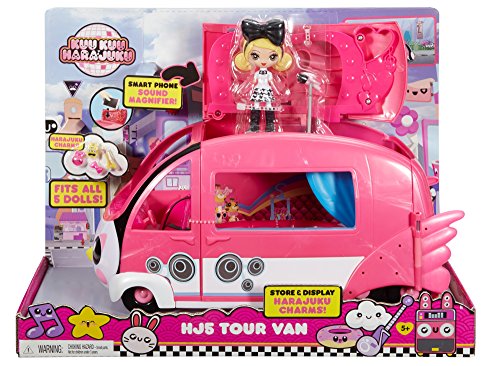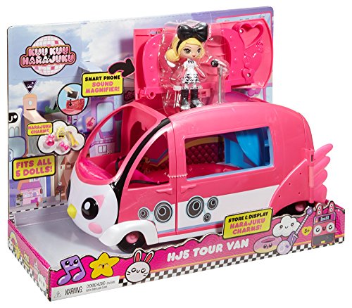 Hit the road to pop star fun with this colorfully cool band van from the Kuu Kuu Harajuku animated series! HJ5 are going on tour and you are invited! Hop aboard and discover multiple play areas, a removable couch, table, 5 musical instruments, and a storage closet for the included 5 Harajuku Charms. There's also a stylin' vanity with a smart phone stand to amplify your music so the dolls can dance and perform for you. Accessorize the included G doll and the van's wall with your Charms! Rehearse songs, write new music, and hit the road to stardom. You'll have tons of storytelling fun with this tour van and the included G fashion doll. There's room for all 5 members of HJ5, too, so you can collect Love, Angel, Music and Baby and prepare for your next performance on the go. Other dolls sold separately, subject to availability. Colors and decorations may vary. Smart phone not included.Feature