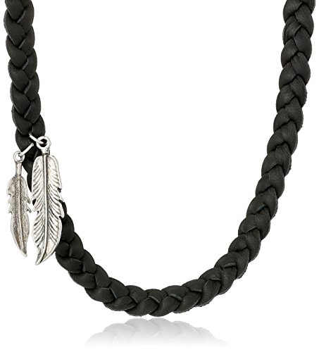 Ettika Men's Black Braided Deerskin Bracelet with Silver Colored Feather Pendant Necklace s
