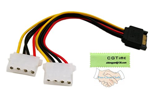 CGTime 6 Inch Sata 15-Pin Male To Dual 4 Pin Molex Lp4 Female Ide Hard Drive Power Y-Adapter Converter Cable,Male To Female For 12V/5V Ide Hdd Dvd