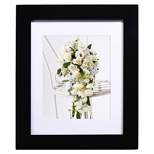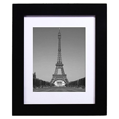 Adeco 11x14 Black Wood Decorative Picture Frame with White Mat - Made to Display 8x10 Photo with Mat or 11x14 Photo without Mat