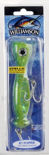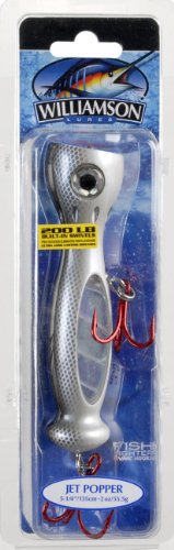 ReleaseDate : 2008-12-16 Studio : Williamson Publisher : Williamson Binding : Sports Product Description Top water lovers get ready for action. The Williamson Jet Popper with its large cup face and jet holes will create a loud "POP" and bubble trail that drives the fish crazy. A 300 lb. swivel connects line directly to the lure, allowing perfect rotation and reducing the chance of a thrown hook. It casts like a bullet, yet is very stable on the retrieve and easy to work. Superior construction enables you to fight the largest fish around. Pop 'till you drop!!! 0