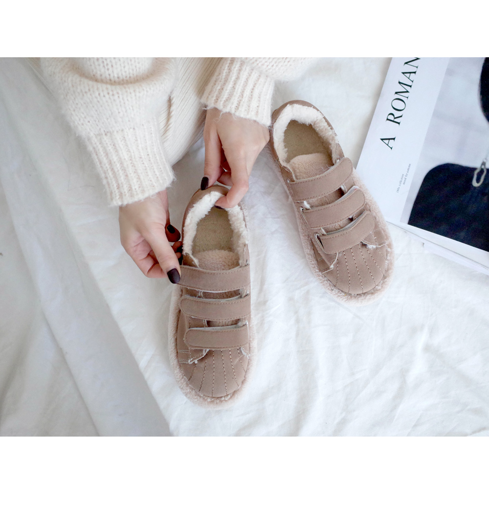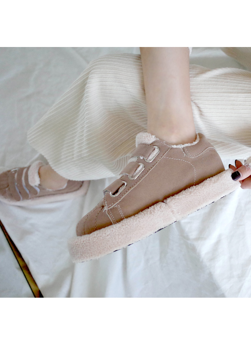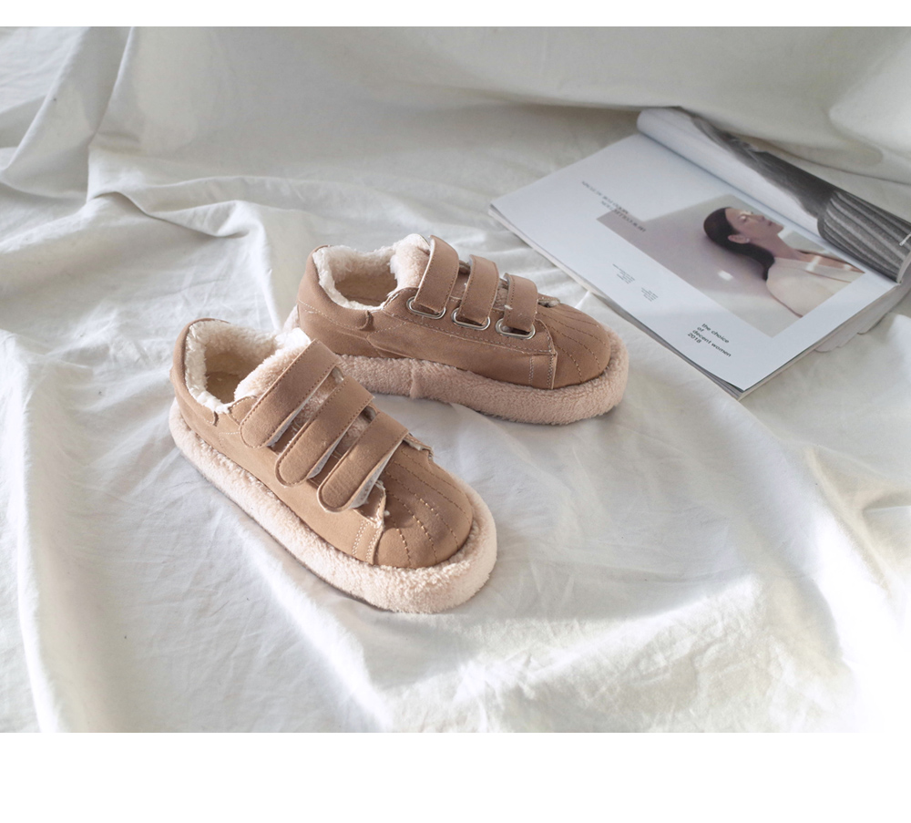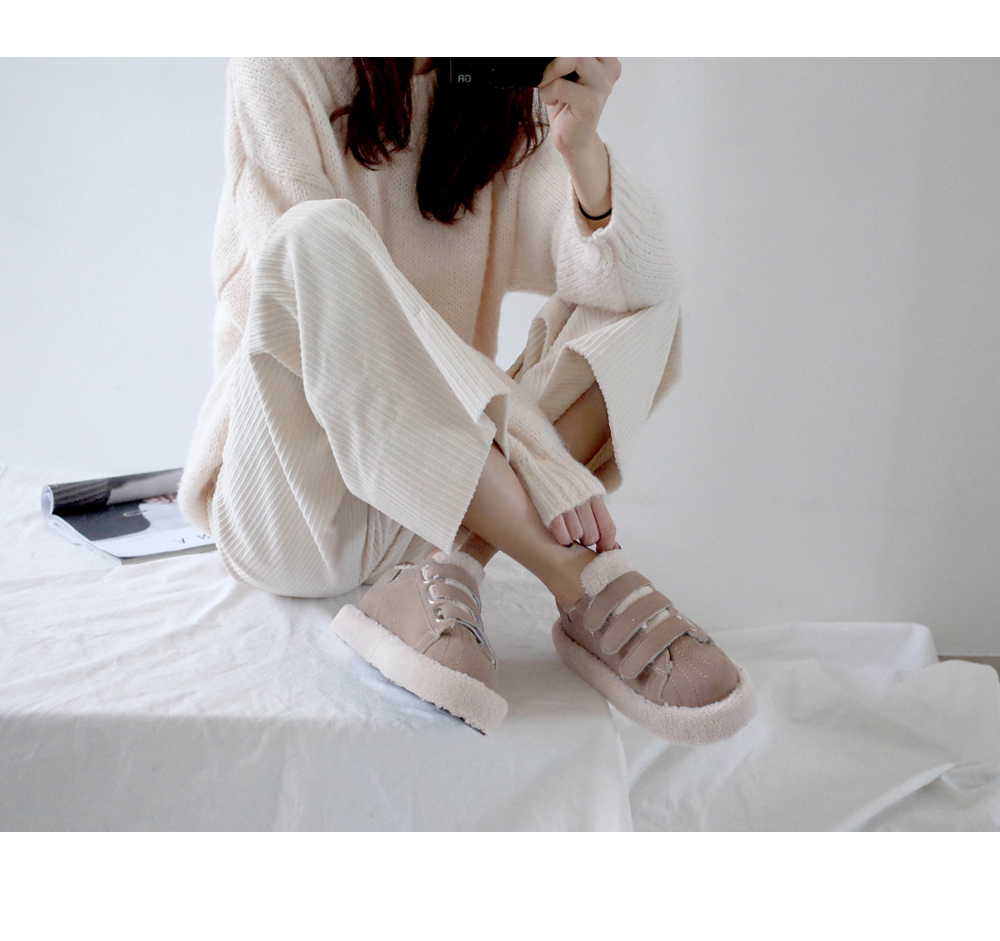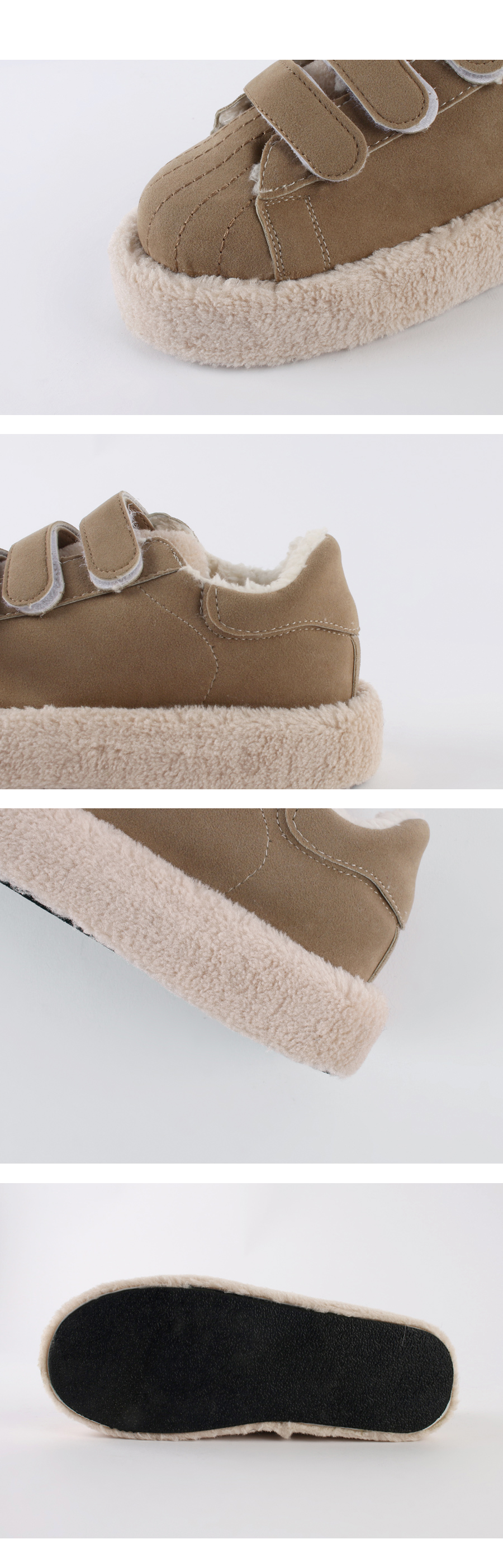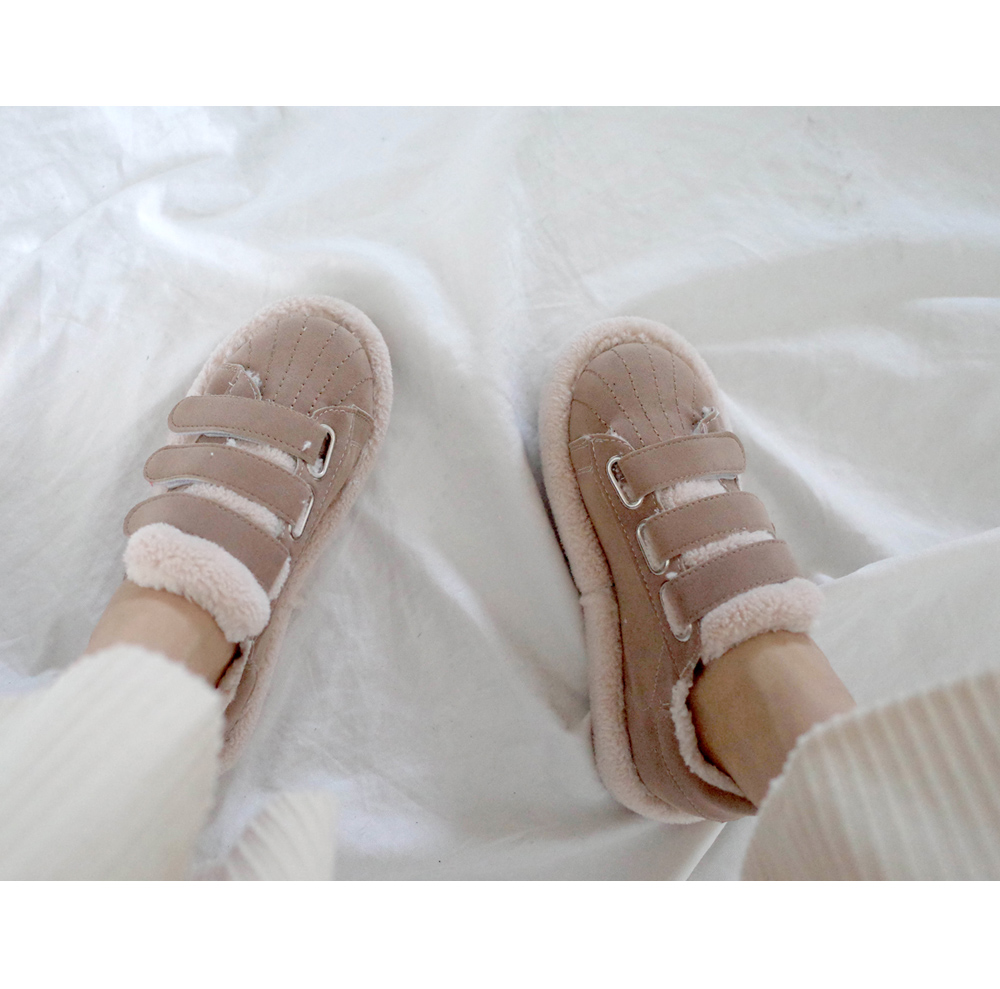 발등 벨크로로 손쉽게 핏 조절이 가능하며 안감 전체 페이크 퍼로 따뜻한 착화감과 보드라운 터치감까지 느낄 수 있습니다.