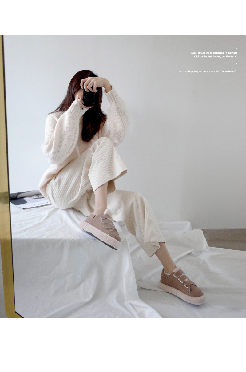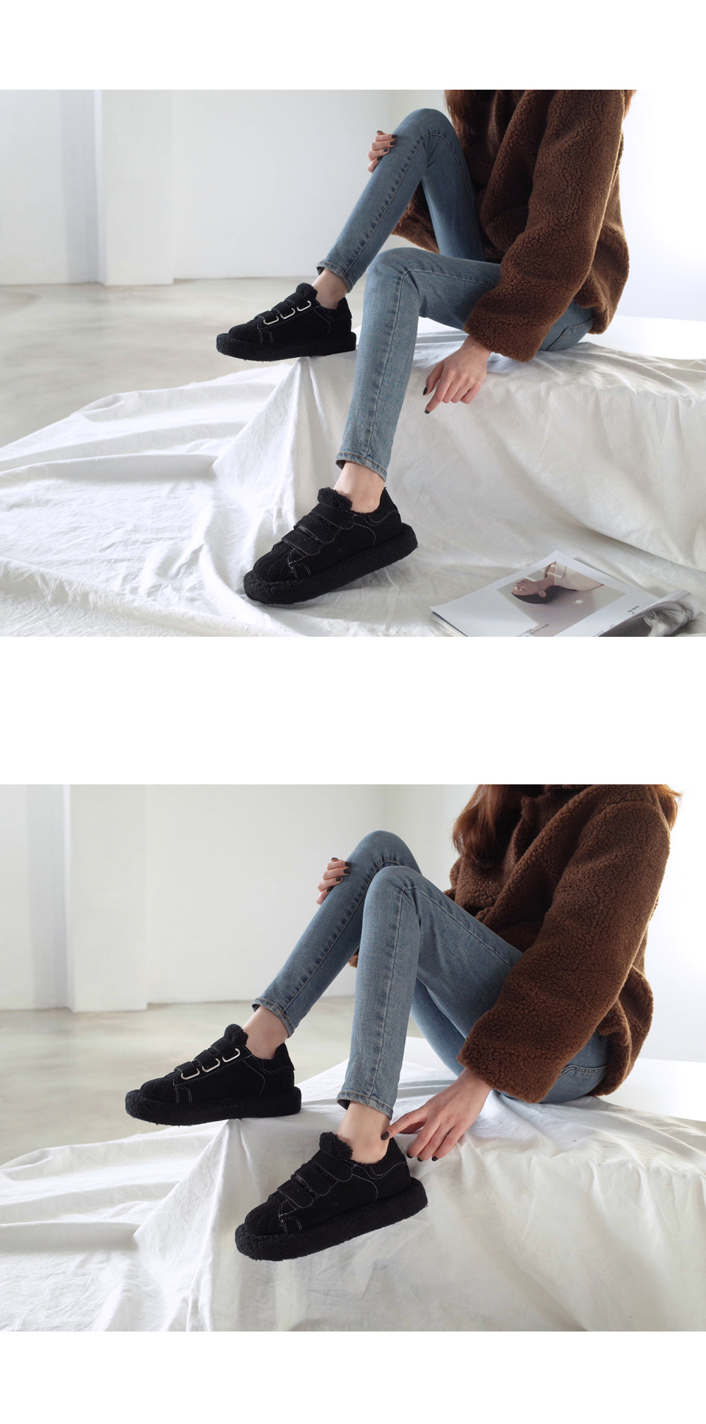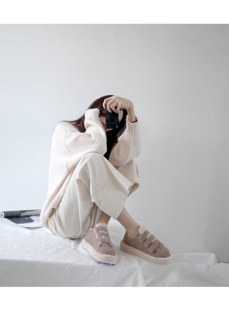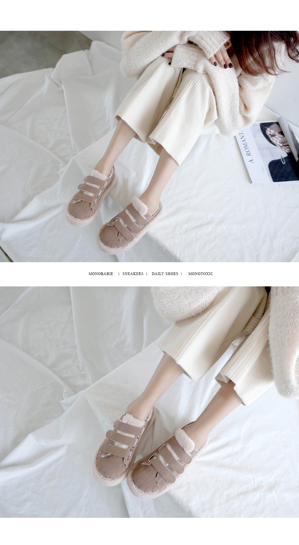 DETAILS - 소재 : 인조스웨이드 인조퍼 - 안감 : 옆면 바닥 털 안감 - 컬러 : beige,black - 피팅감 : 정사이즈 / 무게 : 보통인편 - 착화감 : 편해서 데일리 슈즈로 좋아요 - 모델피팅 : 235(37)