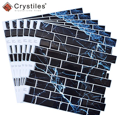 Crystiles Peel and Stick Self-Adhesive DIY Backsplash Stick-on Vinyl Wall Tiles for Kitchen and Bathroom Décor Projects, Black Marble Style, Item# 91010847, 10” X 10” Each, 6 Sheets Pack