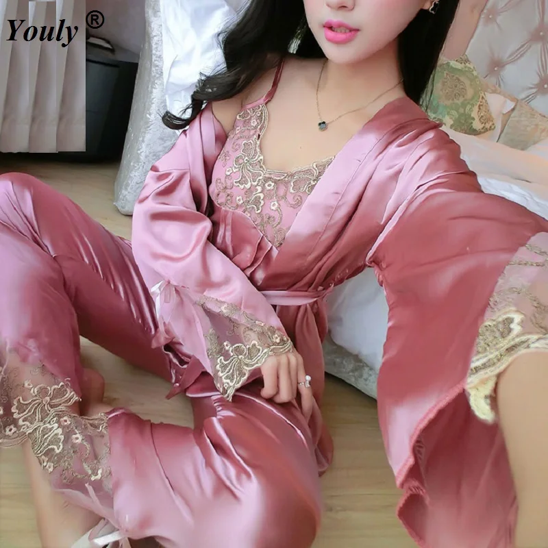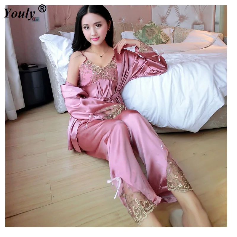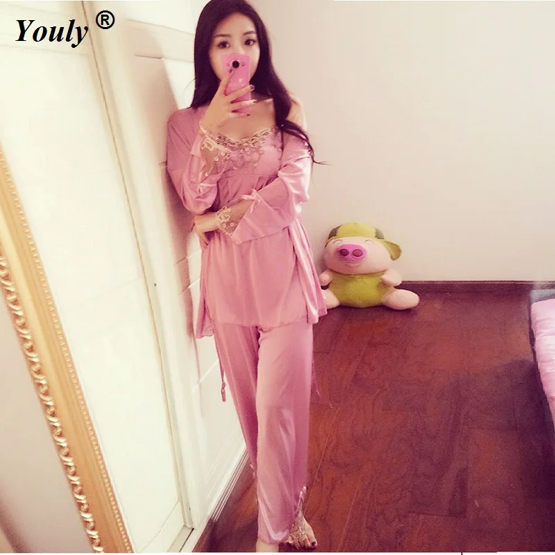 style:Female Lounge Pyjamas 3 Pcs Pajama Long Pants Set
