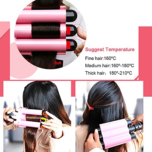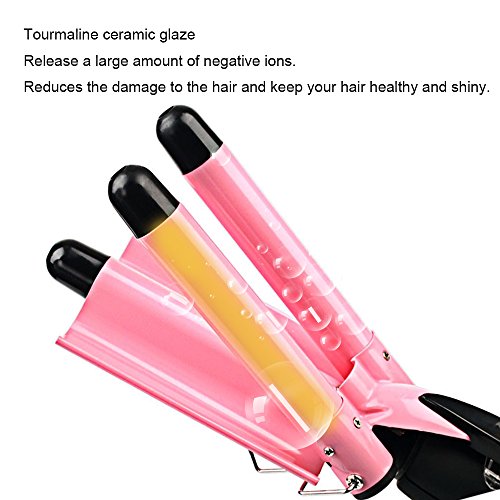 - Harmless: With the tourmaline ceramic,hair curler releases large amounts of negative ions which reduces the damage to the hair and keep your hair healthy and shiny.This triple hair curler is suitable for all hair types, perfect for long and thick hair.