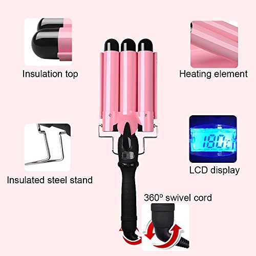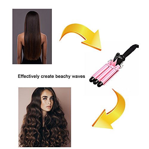 - This 3-Barrel hair curling iron provides unmatched heat distribution,it's perfect to create beachy,great looking curls that last all day.Triple barrel allow you to finish curling in a very short time.
