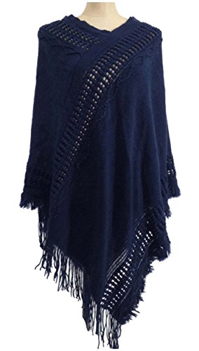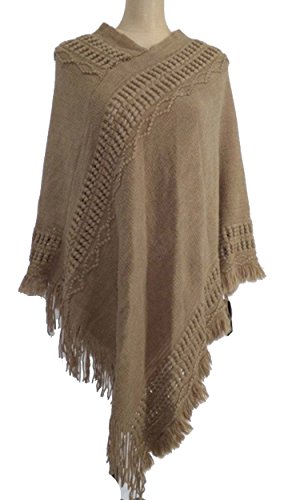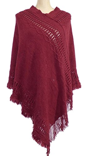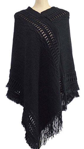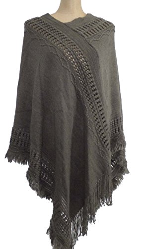 (MCK Image)/Accessories/Scarves/DIRECT FROM USA/MCK Image Womens Textured Asymmetrical Poncho Cape Shawl Wrap With Fringe Hem