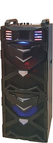 -. Binding : Electronics -. Brand : QFX -. EAN : 0606540035252 -. Feature : QFX portable Bluetooth party speaker is ready to party with a built in disco light and all the features you want and need / Packed with awesome party features like: two 10 inch woofers, two 1 inch tweeters, Horn, and RGB LED disco light / This high content unit has Bluetooth capability, FM radio, USB/SD ports, guitar input and volume, and a 7 band equalizer / Mic ready design, right out of the box with: microphone input, microphone volume, microphone echo, and microphone P.R.Iority / Convenient handle and wheels ensure you get This speaker unit where you need it with ease; powered by a 12V 7Ah rechargeable battery; 120/240V 50-60Hz; Black finish -. Label : QFX USA -. Manufacturer : QFX USA -. Model : PBX-410207 -. MPN : PBX-410207 -. NumberOfItems : 1 -. PackageQuantity : 1 -. PartNumber : PBX-410207 -. ProductGroup : CE -. ProductTypeName : PORTABLE_AUDIO -. Publisher : QFX USA -. Studio : QFX USA -. Title : QFX PBX-410207 Portable Bluetooth Party Speaker with Disco Lights -. UPC : 606540035252