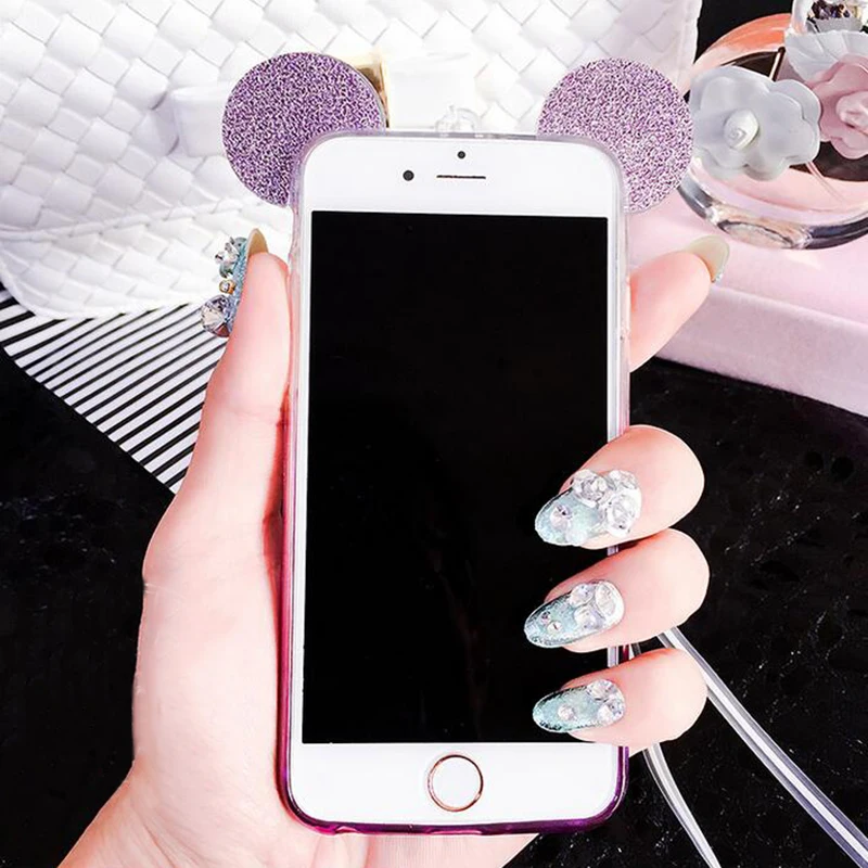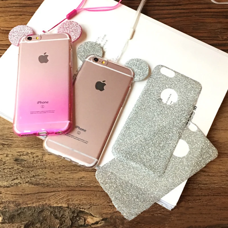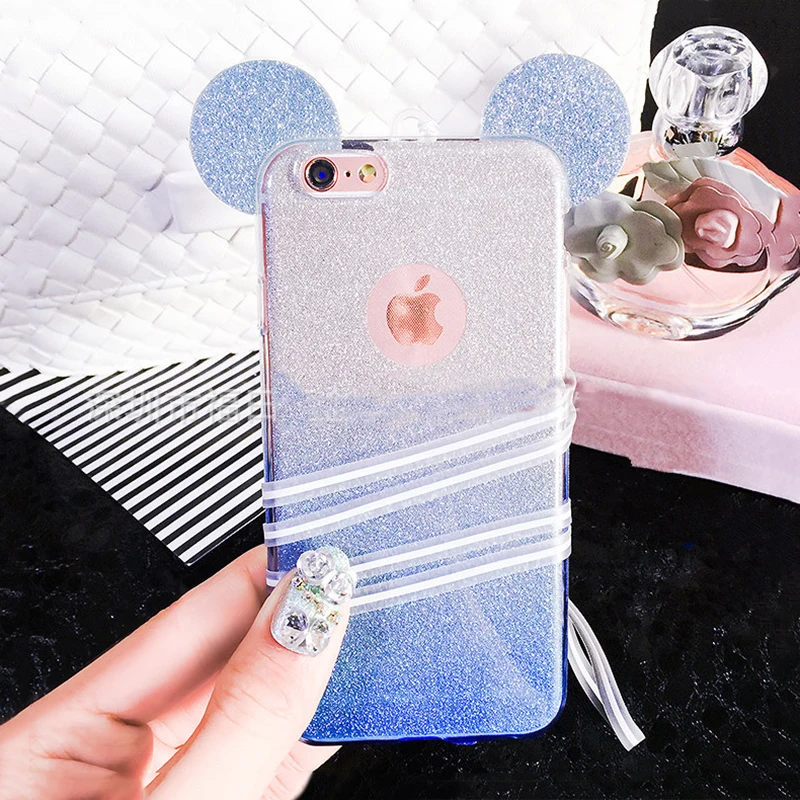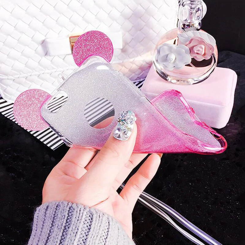 Style 6:3D Mouse Mice Ears Soft TPU Gel Silicone Silicon Glitter Powder Case