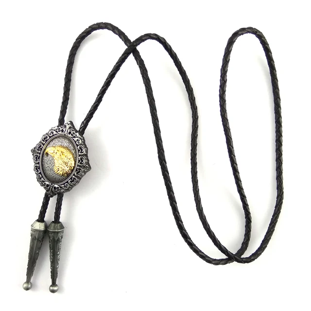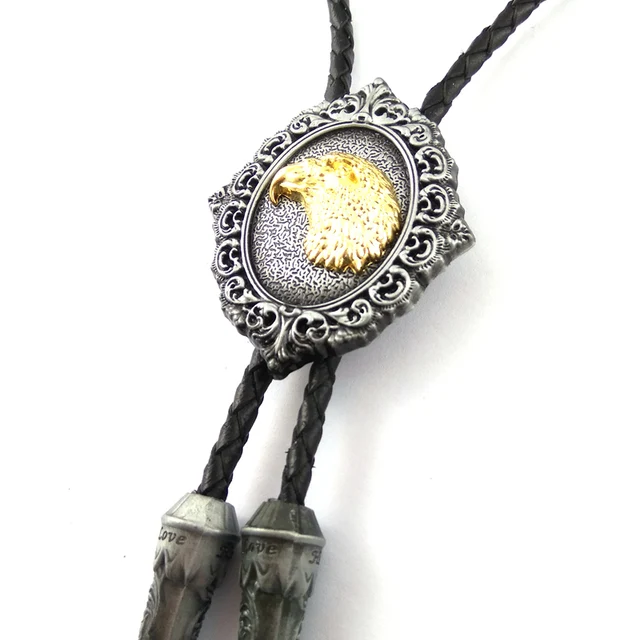 | [해외]카우보이 남성 액세서리 블랙 PU 가죽 골드 이글 볼로 타이 금속 버클 djustable 패션 목걸이 |