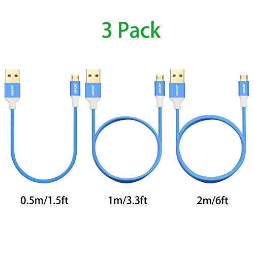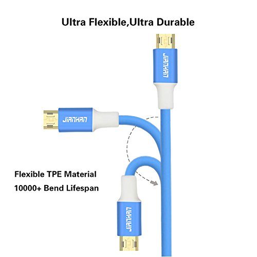 Reversible Micro USB Cable,JianHan [3-Pack] Micro USB Charging Cable for Samsung Galaxy S6,S6 Edge, Note 5 ,LG G3 G4, Nexus, Motorola, Android Smartphones and More (1.5ft /3.3ft /6ft Blue)