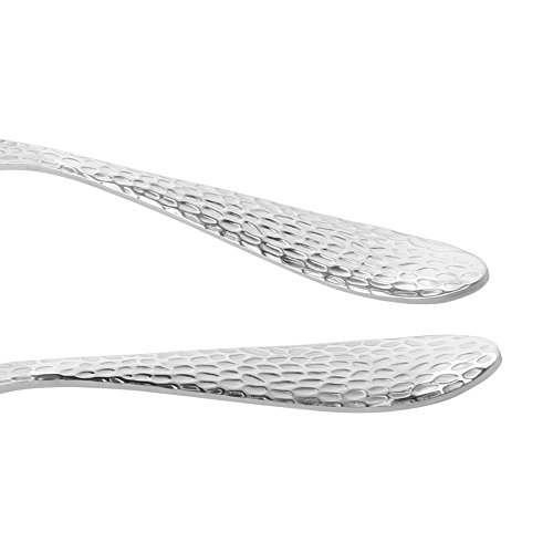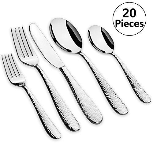 Heavy-duty 20 pieces flatware sets include 4 x Dinner Spoons; 4 x Dinner Forks; 4 x Steak Knives; 4 x Salad Forks and 4 x Dessert Spoons. They are made from durable 18/10 stainless steel in premium quality and they have distinctive design.