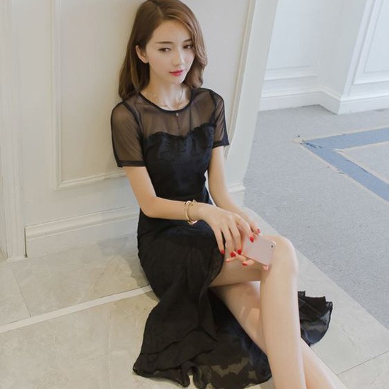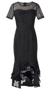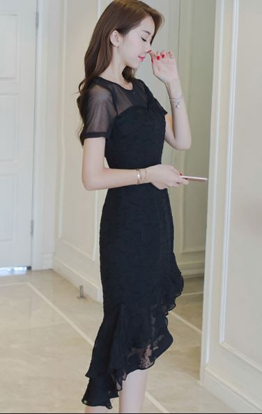 流れるようなアシンメトリーとフリルの裾が華やかに魅せます。