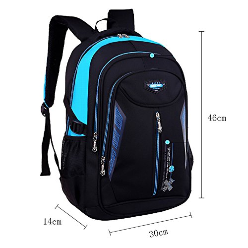 Product Description Specification: Material: nylon Weight: 700g Dimensions:30(L) x 14(D) x 46(H)CM Function: school bag backpack travel bag Structure: 2 side slip pockets, 3 external zipper pockets, 1 main compartment, 1 internal zipper pocket, 1 internal slip pocket . Closure Type: zipper Color: Blue / Red / Green / Yellow Gender: unisex