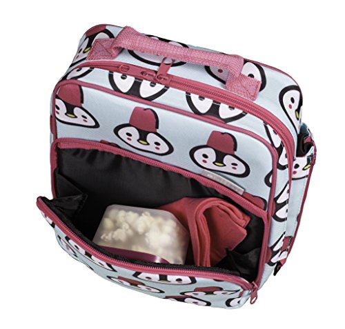 Insulated Durable Lunch Bag - Reusable Meal Tote With Handle and Pockets - Penguin