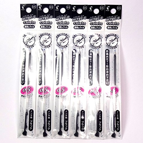 Pilot Hi-Tec-C Coleto Gel Ink Pen Refill 0.5mm, Black, × 6 Packs/total 6 pcs (Japan Import) [Komainu-Dou Original Package]