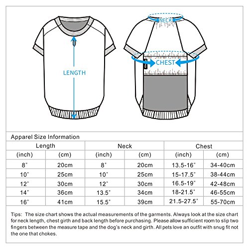 -. Feature : Size: back length 8", neck girth 8", chest girth 13.5"- 16". Measure your dog from the base of the neck to the base of the tail for back length. / Fresh and elegant look; Vivid and bright colors will definitely make your pooch stand out from the crowd! / Curved Hem, relaxed neckline and short sleeves / Made of 62% polyester, 33% cotton and 5% Spandex / Machine-washable, with similar color items, in cold water on the gentle cycle