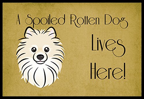 Caroline's Treasures BB1455JMAT Pomeranian Spoiled Dog Lives Here Indoor or Outdoor Mat, 24 x 36", Multicolor