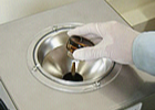 4) バルク検査 出来上がった中身は試験室で厳密に検査されます。製品ごとに設定された検査項目の全てに合格したもののみが次の工程へと進みます。 |