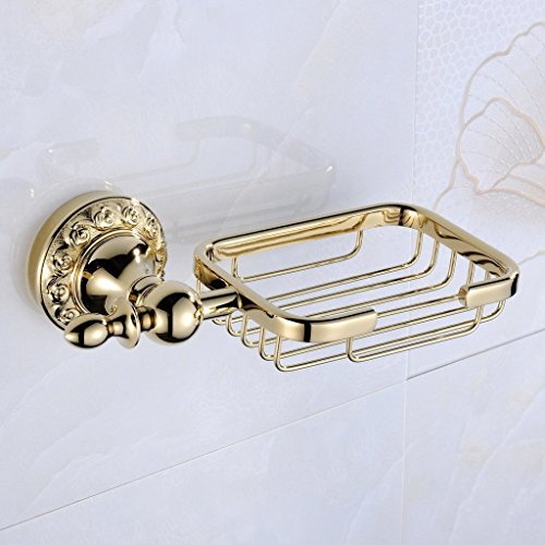 Leyden Wall Mount Bathroom Golden Ti-PVD Finish Brass Material Soap Dishes Basket