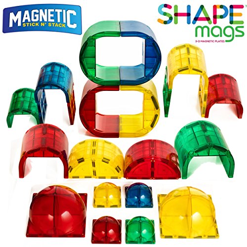 -. Title : Shape Mags 30 Piece Round set 6X6 Domes 3X3 Domes Arches Tunnels & Rounded Windows With Super Strong Magnets Clear Color Magna Tiles Compatible