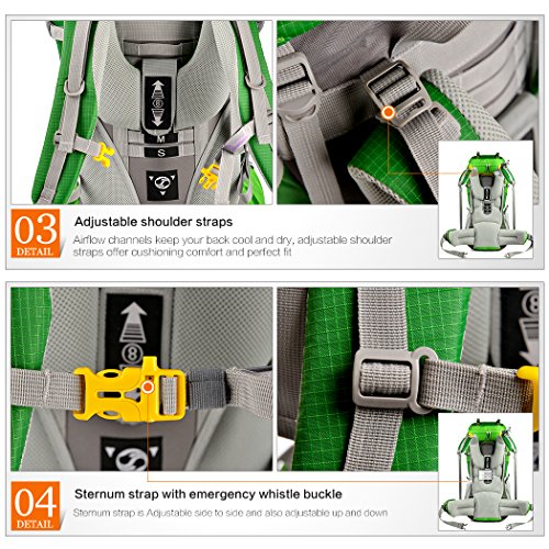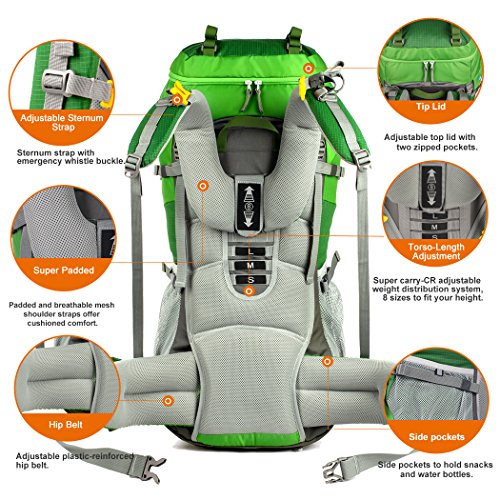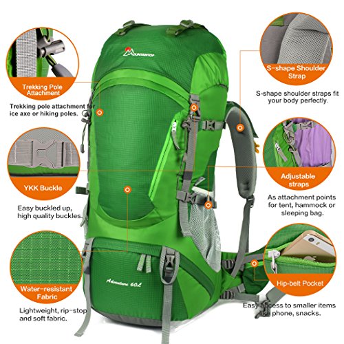 -. Title : Mountaintop 60L/55L+5L Water-resistant Hiking Backpack Internal Frame Backpack for Outdoor Hiking Travel Climbing Camping Mountaineering with Rain Cover-5822II
