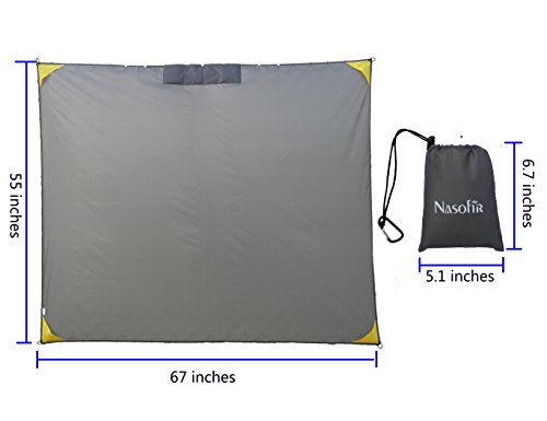 Lightweight & Thin & Portable: This Outdoor blanket fits 2-4 people (55''X 67'') when open and folds to the size(6.7''X 5.1'') , Weight 6.91ounce. the blanket can hang on your backpack or your belt easily.