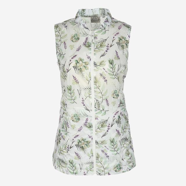 독특한 패턴 장식으로 산뜻한 외관을 보여주며 주름넥으로 편안한 착용감을 선사하는 베스트입니다.