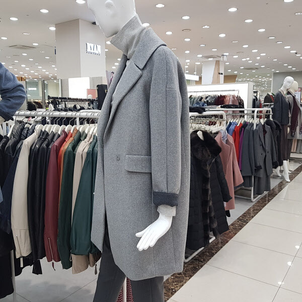 도톰한 모직코트로 빅카라가 여성스럽스러운 코트입니다.