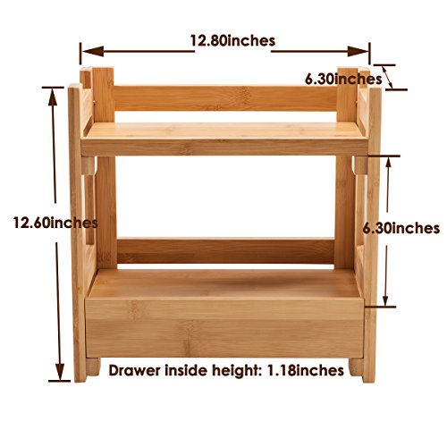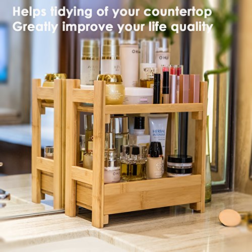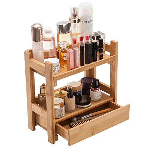 Gobam Makeup Organizer Holder Cosmetic Storage Display Shelf with 1 Drawer, Large Capacity, Assemble Easily, Natural Bamboo