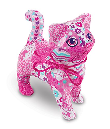 Creating the perfect patchwork pal has never been so fun, fast, and easy! pre-cut round stickers in different sizes and eight coordinating patterns are mess-free and simple to press onto the adorable paper-maché animal figure. Overlap to create one-of-a-kind designs, then use the foam craft brush to coat with glitter Decoupage glue. Finish with a ribbon “collar” and expressive sticker eyes!Feature