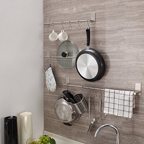 YIGII Self Adhesive 27.55-Inch Towel Bar Holder for Bathroom or Kitchen, Brushed SUS 304 Stainless Steel