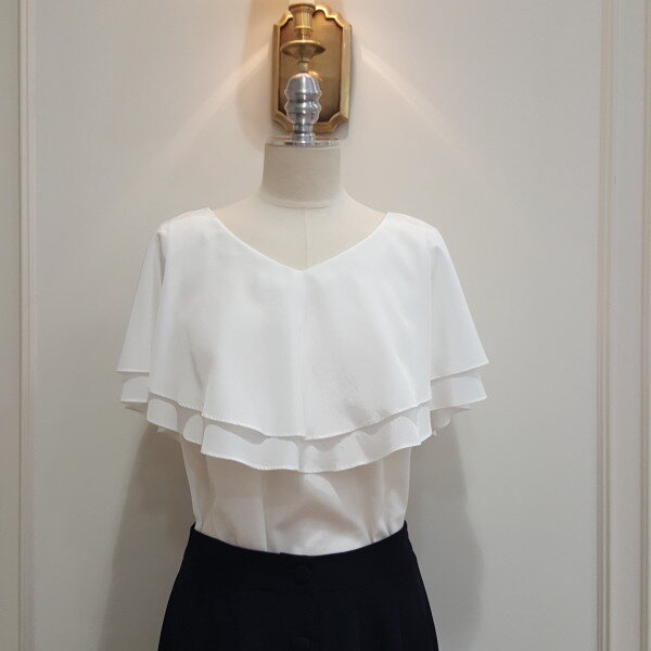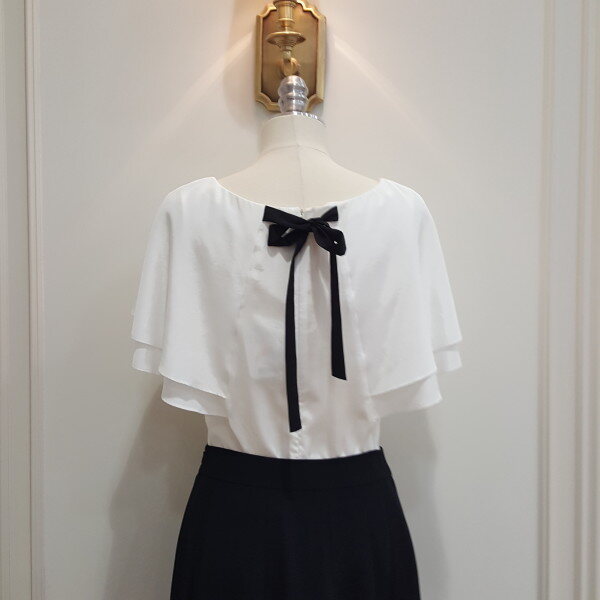 라운드 홀이 고급스러우면서도 갖춰입은 느낌도 나면서 단정한 느낌을 주며 뒤 네크에 블랙실크로 포인트를 주었음.
