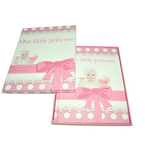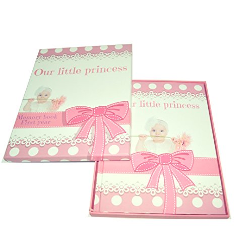 This 210 x 285mm high-quality 40-page baby girl pink memory book comes in a