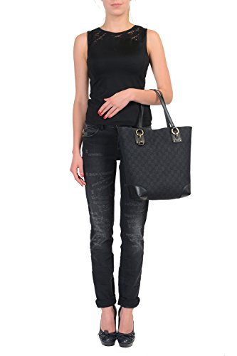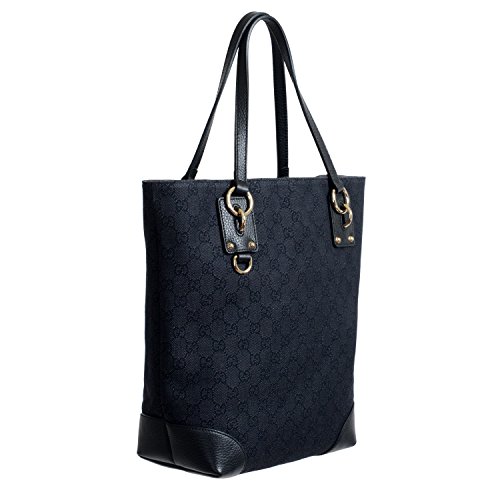 Gucci Women's Black Canvas Leather Trimmed Guccissima Print Tote Shoulder Bag