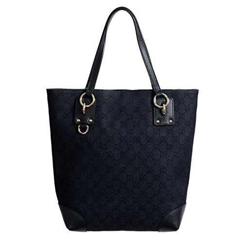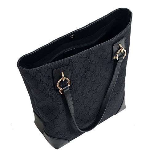 -. Title : Gucci Women's Black Canvas Leather Trimmed Guccissima Print Tote Shoulder Bag