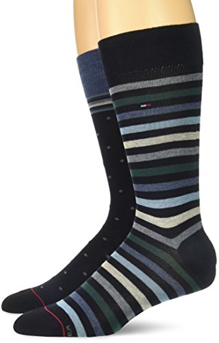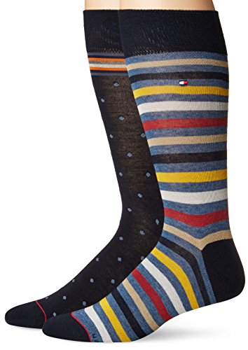 Tommy Hilfiger Men's 2 Pair Primary Stripe Crew, Classic Navy, Shoe Size 7-12