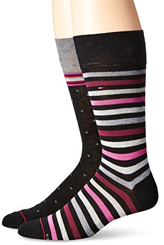 Tommy Hilfiger Men's 2 Pair Primary Stripe Crew, Black, Shoe Size 7-12