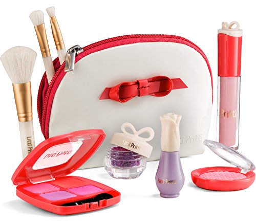 Make-Believe Set for Hours of Role-Playing Fun. The next time your daughter watches you put on makeup, let her join in the fun with her very own Litti Pritti 9-Piece Pretend Makeup Set. As she stands by your side, she can pretend to put on rubber eye shadow, blush, lip gloss and even glitter for that extra special touch. Next, you can sit down and pretend to give each other mani-pedis. The nail polish bottle shows the color the nail polish would be, and when she takes off the top there's an attached brush. The set also comes complete with three brushes ? made using animal hair for soft comfort ? and a real cosmetic bag. Boasting real style and quality, this cosmetic bag is made from PU leather and provides a convenient place to store all her makeup when done playing. What You Get - blush case