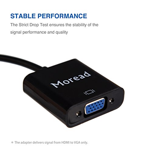 COMPACT DESIGN - The compact-designed portable Moread HDMI to VGA adapter connects a computer, desktop, laptop, or other device with HDMI port to a monitor, projector, HDTV, or other device with VGA port; Tuck this lightweight gadget into your bag or pocket to do a business presentation with your laptop and projector, or extend your desktop screen to a monitor or TV; A VGA cable (sold separately) is required