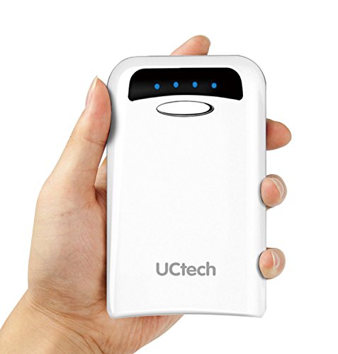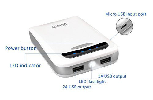 - Feature : Monster capacity 13000mAh rechargeable power capacity provides you with enough power to charge a cell phone 3-6 times (iPhones almost 6 times, large-capacity phones like the Galaxy S4 almost 3 times, and nearly a full charge for an iPad). / Smooth and portable design makes it suitable for a wide range of occasions. Reliable lithium-ion battery ensures quality. / Equipped with dual USB ports(5V/2A and 5V/1A), you are allowed to charge your iPad, iPhone, Android, and more simultaneously at a fast speed. / Four smart LEDs keep you updated as to the remaining capacity. A convenient built-in flashlight enables you to use it in dark or low-light environments: lights only after pressing the power button twice. / Package includes: UCtech 13000mAh External Battery, Micro USB cable.